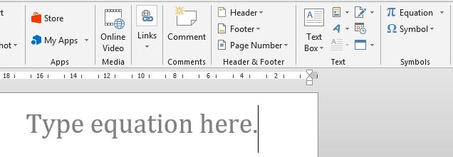 در این منو با استفاده از دکمه Equation که در سمت راست انتهای ربان منابع دیده میشود کلیک کنید و اولین فرمول خود را ایجاد کنید.